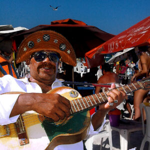 Minha vida é andar por esse país, pra ver se um dia eu descanso feliz,guardando as recordações das terras por onde andei… Sempre que vejo um violeiro, me lembro dessa música de Luiz Gonzaga — grande xará meu. É a imagem perfeita de um músico que ralou muito: criou canções inesquecíveis, tocou em todo tipo de lugar, pra todo tipo de gente, e foi vencedor com seu talento. Têm minha admiração. Na Praia do Forte, durante o verão, sempre aparecem uns violeiros. Chegam já com o figurino pronto de “nordestino típico”: chapéu de cangaceiro, roupa brega e descombinada. Camisa listrada indo pra um lado, calça marrom indo pra outro, tudo bem surrado pra completar o estereótipo. Parece até cena de filme sobre o Nordeste, com